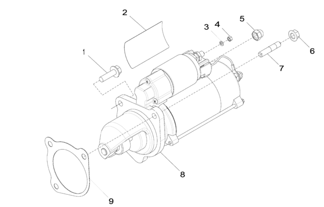 Item Part Description Quantity Variation Number 3015 1 M933-10035-82 SCREW, HEX CAP M10 x 35mm 2 2 GM17554 Label 1 3 # Lock Washer, 5 mm 1 4 # Nut, M5 1 5 GM80280 Nut 1 6 GM30375 Flange Nut, M10 1 7 GM50112 Stud 1 8 GM50639 Starter motor 1 9 223791 GASKET 1