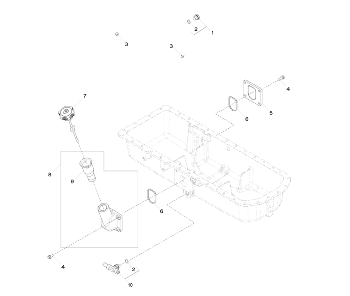 Item Part Description Quantity Variation Number 4067 1 360014 Plug 1 2 360176 O-Ring 1 3 GM32789 Plug 2 4 # Screw, M8 x 25 8 5 GM91940 Plate 1 6 GM91941 Seal 2 7 GM91942 Dipstick 1 8 GM91943 Housing 1 9 352758 Dipstick tube 1 10 GM91944 Drain Valve 1