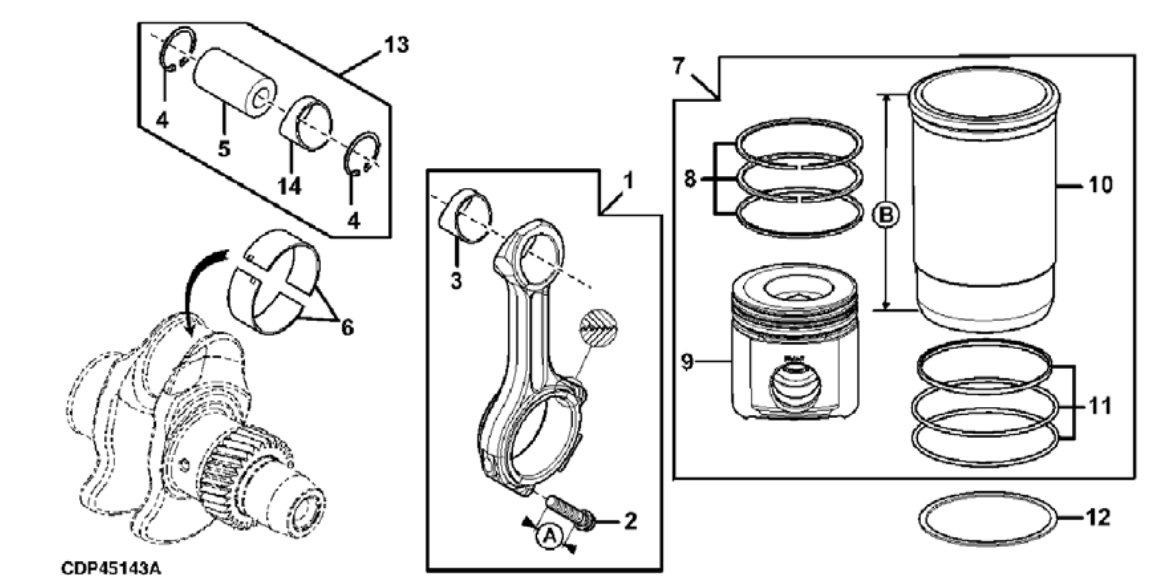 Item Part Description Quantity Variation Number 4822 4833 1 GM17610 Connecting rod 4 1 GM17499 Connecting rod 4 2 GM17477 Screw 2 2 3 GM17446 Bushing 1 3 GM17451 Bushing 1 4 223479 Snap ring 8 4 223452 Snap ring 8 5 GM17450 Piston pin 4 5 360114 Piston pin 4 6 360053 Bearing, standard 4 4 6 360054 Bearing, 0.25 mm undersize AR AR 7 GM32820 Piston/liner kit 4 7 GM50617 Piston/liner kit 4 8 GM32821 Piston ring kit 1 9 — Piston (not sold separately) 1 1 10 — Cylinder liner (not sold separately) 1 1 11 223419 O-ring kit 1 1 12 GM21474 Shim, 0.05mm AR AR 12 GM21475 Shim, 0.1mm AR AR 13 GM21468 Piston pin kit AR 14 — Bushing (not sold separately) 1 AR As Required