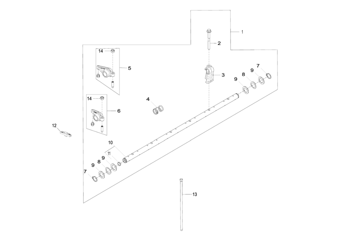 Item Part Description Quantity Variation Number 4903 1 GM79835 Rocker Arm 1 2 GM79836 Cap Screw 6 3 GM79837 Pedestal 6 4 GM50136 Spring 5 5 GM79842 Rocker Arm 6 6 GM79838 Rocker Arm 6 7 GM50111 Snap ring 2 8 GM50123 Washer 2 9 GM50182 Washer 4 10 GM79840 Rocker Arm Shaft 1 11 GM79841 Plug 2 12 GM79843 Guide 12 13 223877 Push Rod 12 14 GM79839 Nut 1