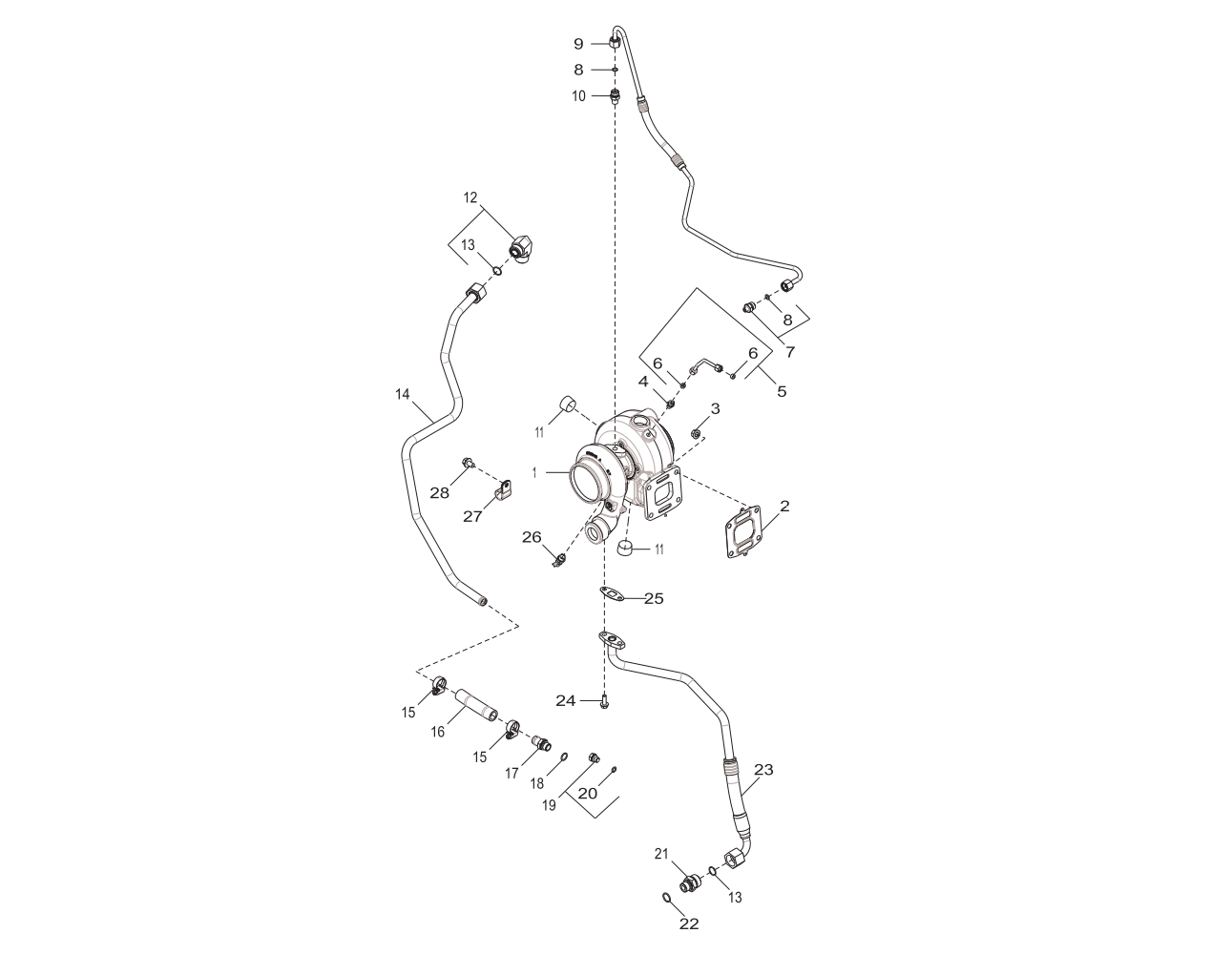 ItemPartDescriptionQuantityVariationNumber 65J31 GM88767 Turbocharger 12 GM88742 Gasket 13 GM30375 Flange Nut, M10 44 223820 Fitting 15 GM88758 Line 16 223476 Packing 27 GM49990 Fitting, Adapter 18 36