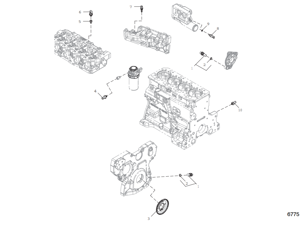 Item Part Description Quantity Variation Number 6775 1 GM59793 Sensor, Magnetic Pick-up 2 2 360180 O-Ring, 17.3 X 2.2 MM 2 3 GM49838 Wheel 1 4 GM50230 Sensor 1 5 GM88800 Adapter Fitting 1 6 GM88789 Manifold Air Press. Sensor 1 7 GM50034 Thermocouple (air temperature) 1 8 GM32955 Sensor, coolant temperature 1 9 GM21508 O-ring 1 10 GM32919 Sensor, pressure 1